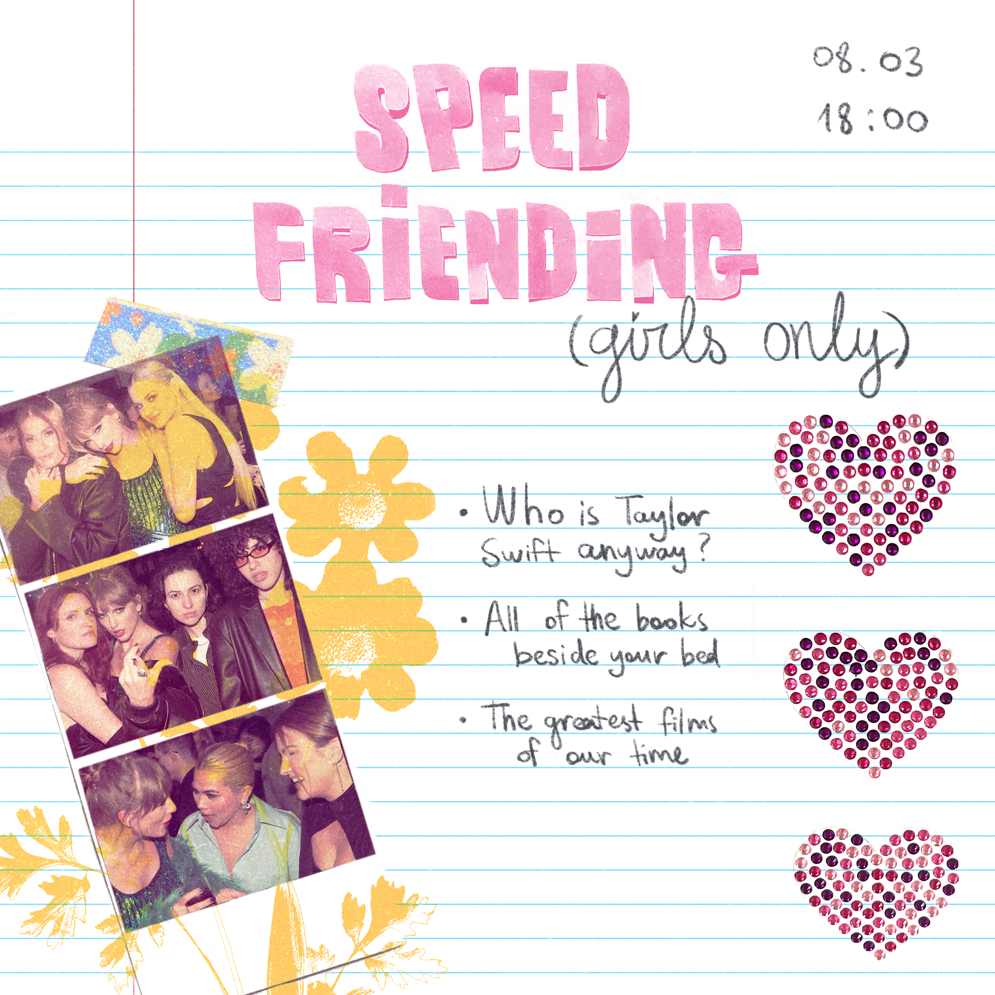 Вообще, март известен как women history month, и мы, вдохновившись этим, решили устроить womenfriending: классический спидфрендинг, но girls only! Кажется, март — идеальный месяц, чтобы найти новых подружек.